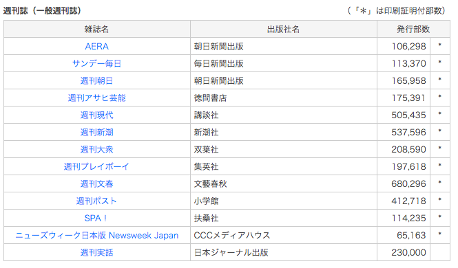 『週刊文春』は、雑誌協会のサイトにある部数算定においても、週刊誌ではダントツである。