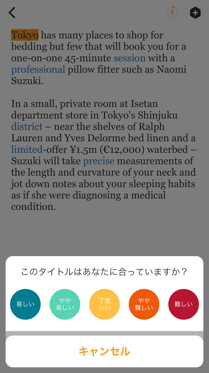 聞き終わると「易しい」から「難しい」までの5段階で評価できるようになっているから、ひょっとしたらアプリのほうでおすすめの難易度を判定するアルゴリズムも入っているのかもしれない。