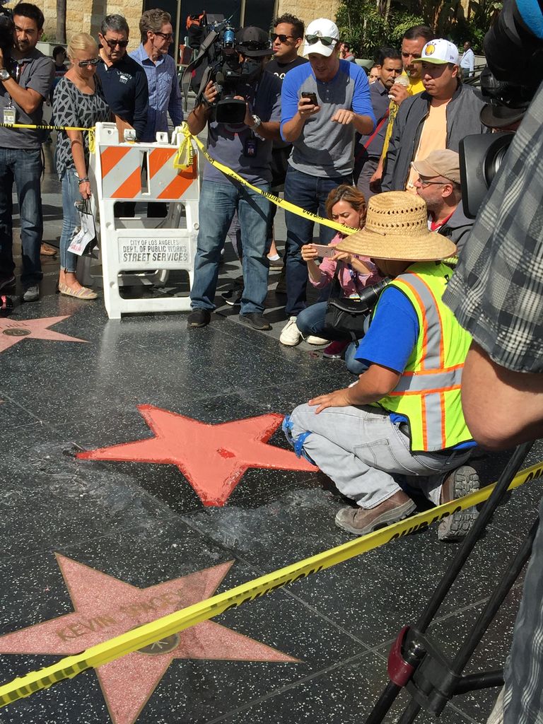 誰かのウォーク・オブ・フェイムの星が破壊されて、その修復作業をしていた。