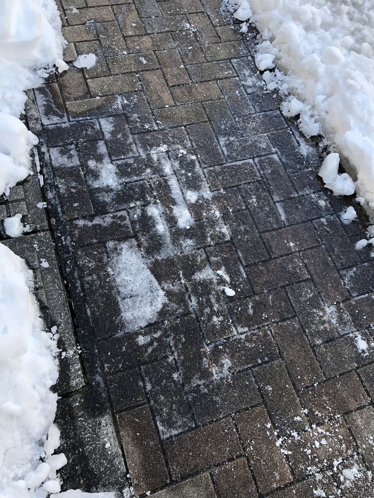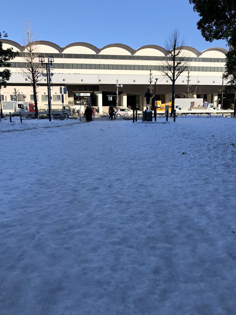 みんな自分の住戸の周囲だけしか雪かきしないから、一番人が集まる駅前は全く手付かず。多くの人が雪を踏み固めるから、もうこの辺はカッチンカッチンである。
