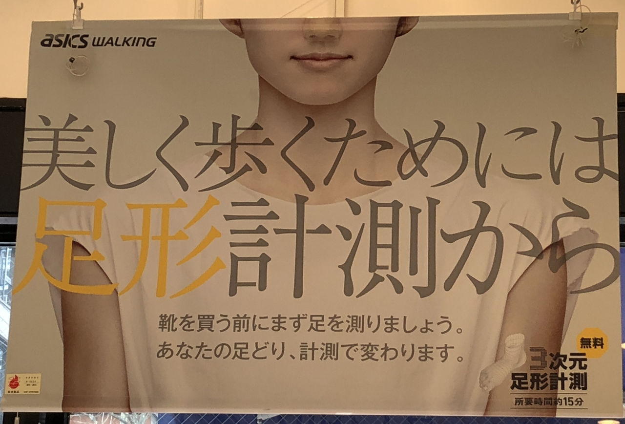 店頭にはいきなりウェブサイトのキー・ビジュアルと同じポスターが掲出されていて、もう店全体計測する気満々である。さっそく私も計測してもらった。