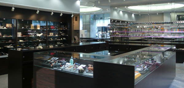 「モンブランを使う人はモンブランを贈ります」「美しさだけなら書きやすさだけならモンブランでなくていい」と、モンブラン大プッシュ、なんでありますが、店内も入ってすぐのところがモンブランのガラスケース。お買い物の紙袋につけてくれるシールも「THE ART OF WRITING」(笑)。